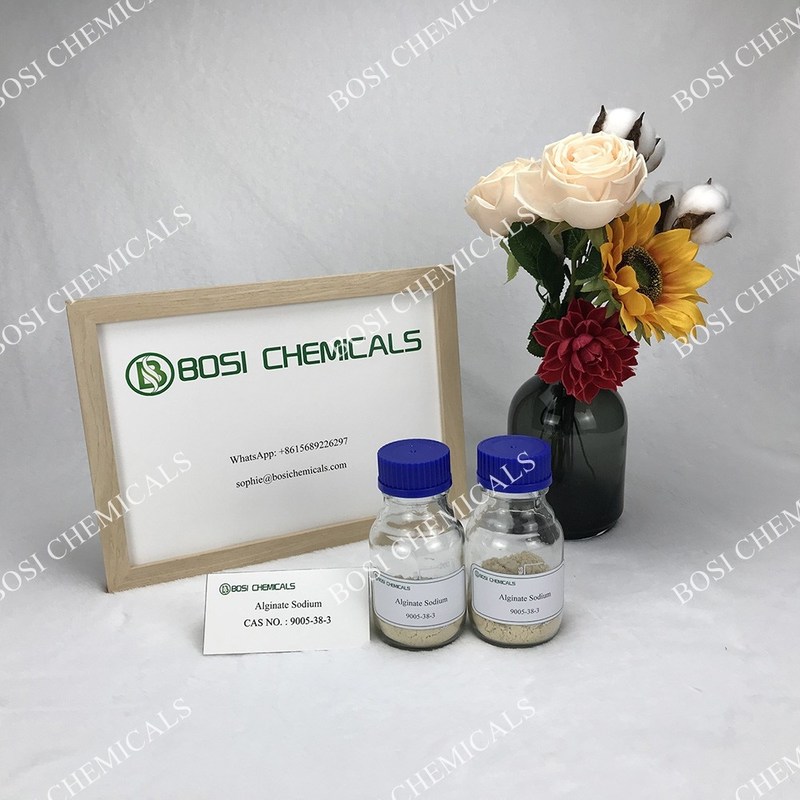 Sodium alginate is used as a gel in pharmaceutical preparations. Sodium Alginate (E401) is extracted from brown seaweed. It is also used as a stabilizer, thickener and emulsifier for food products such as ice cream, yogurt, cream, and cheese. It is a cold gelling agent that needs no heat to gel.
